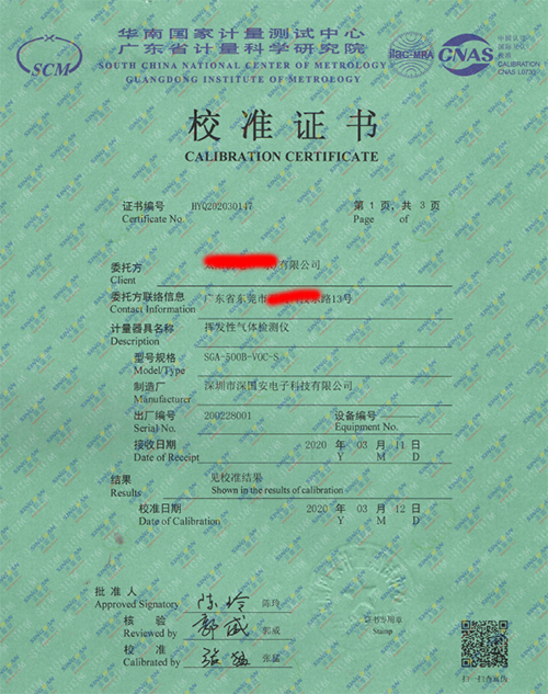 深國安電子制造的SGA-501系列固定式SF6六氟化硫氣體檢測儀,出廠帶第三方專業計量院校準報告證書,其校驗報告結果:儀器精確度:3%FS ,重復性:0.3%FS,線性誤差...